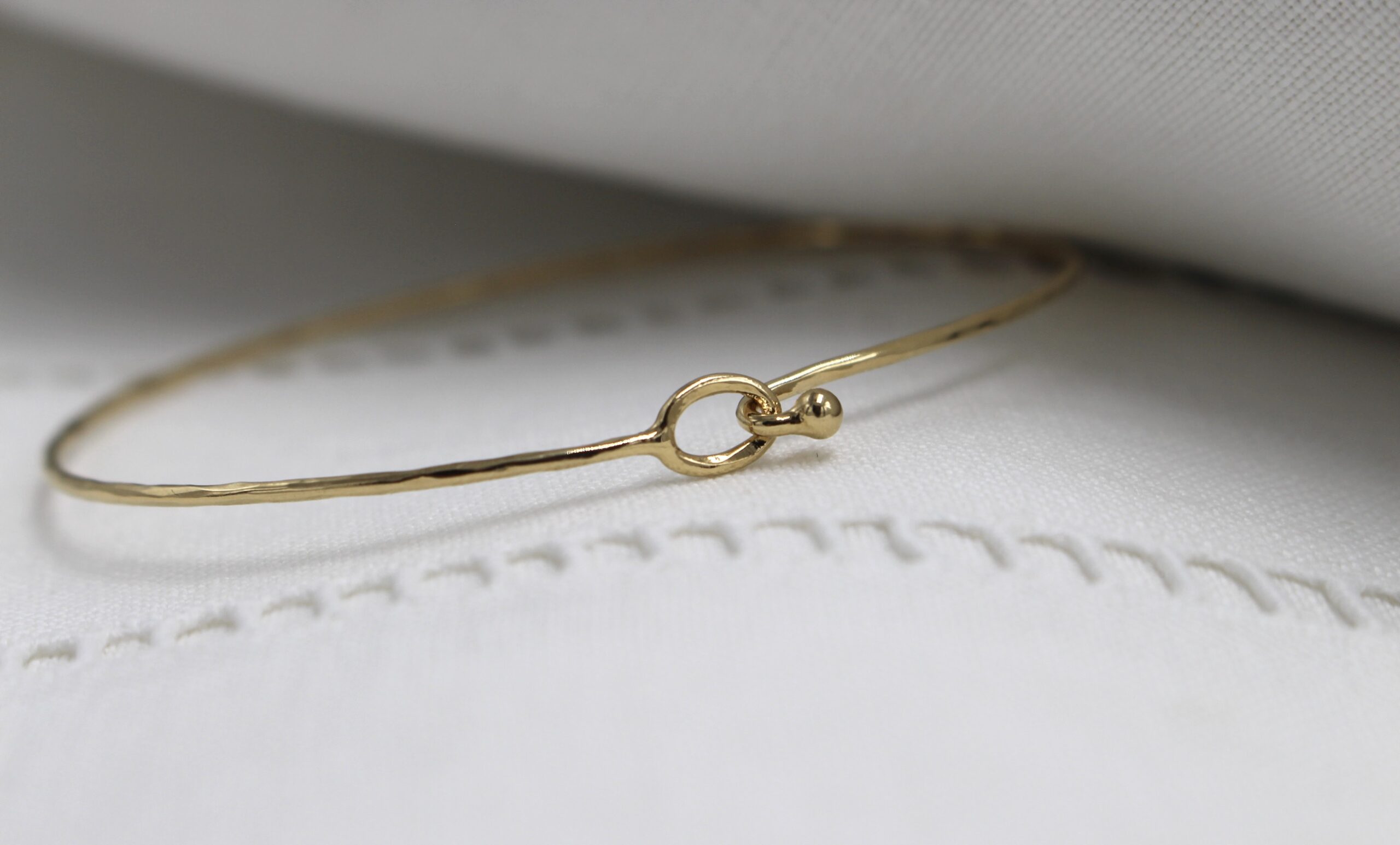 Jonc en plaqué or légèrement martelé qui lui donne sa brillance.