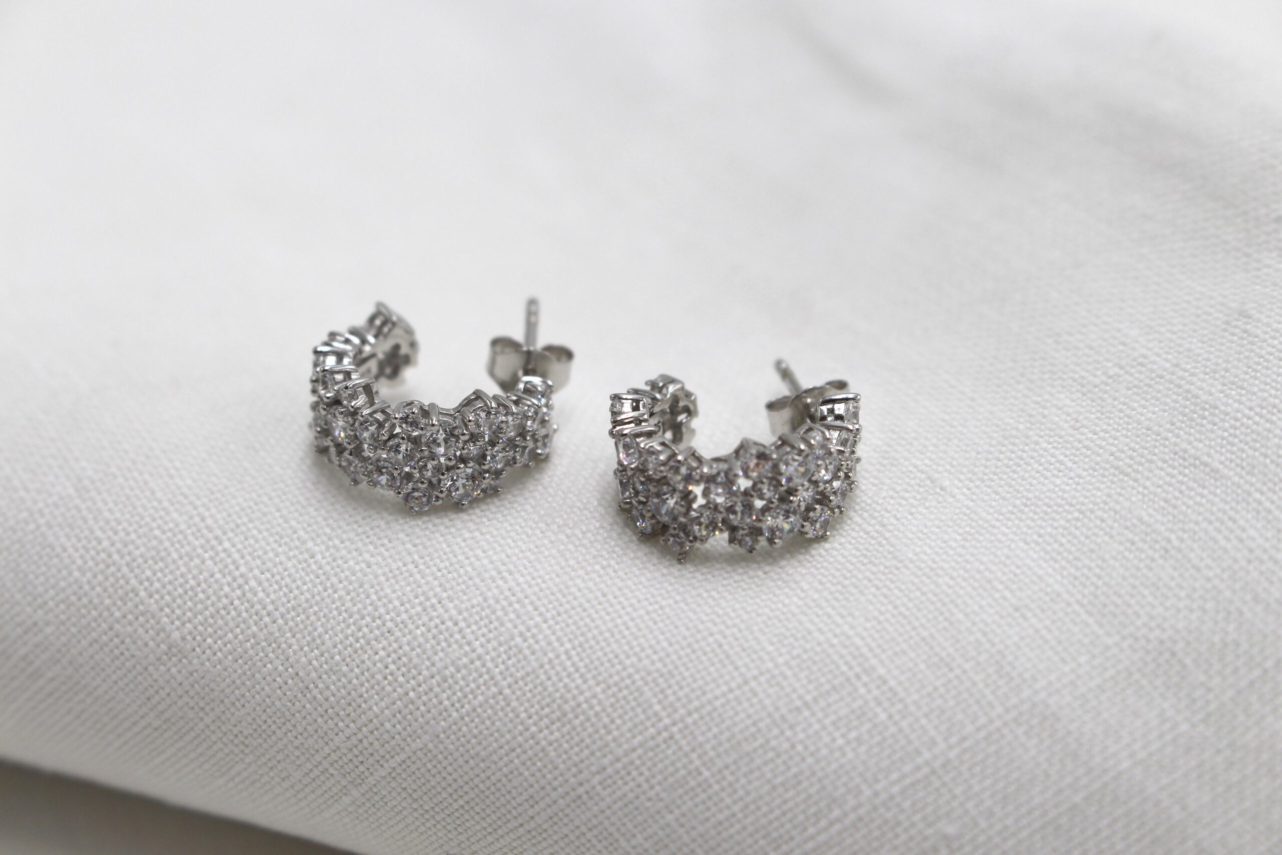Boucles d’oreilles en argent avec pierre de zirconium de couleur naturelle. Ce modèle englobe parfaitement sur le lobe.
